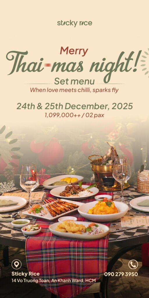 The Christmas Dinner Table at Sticky Rice – 14 Võ Trường Toản is all set for you to enjoy a warm, flavorful festive night.
